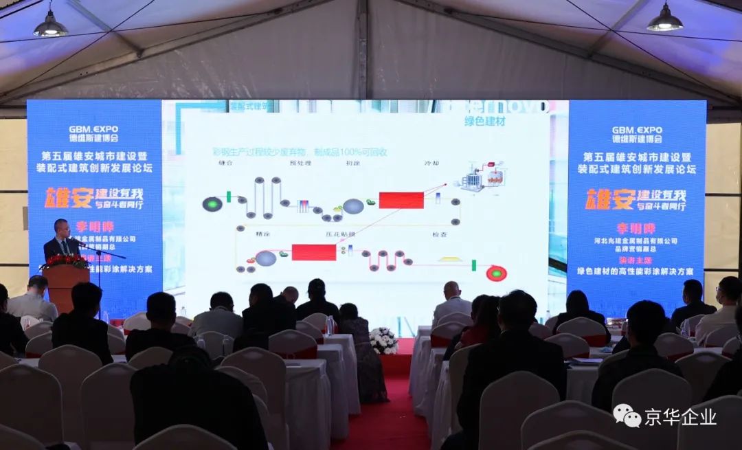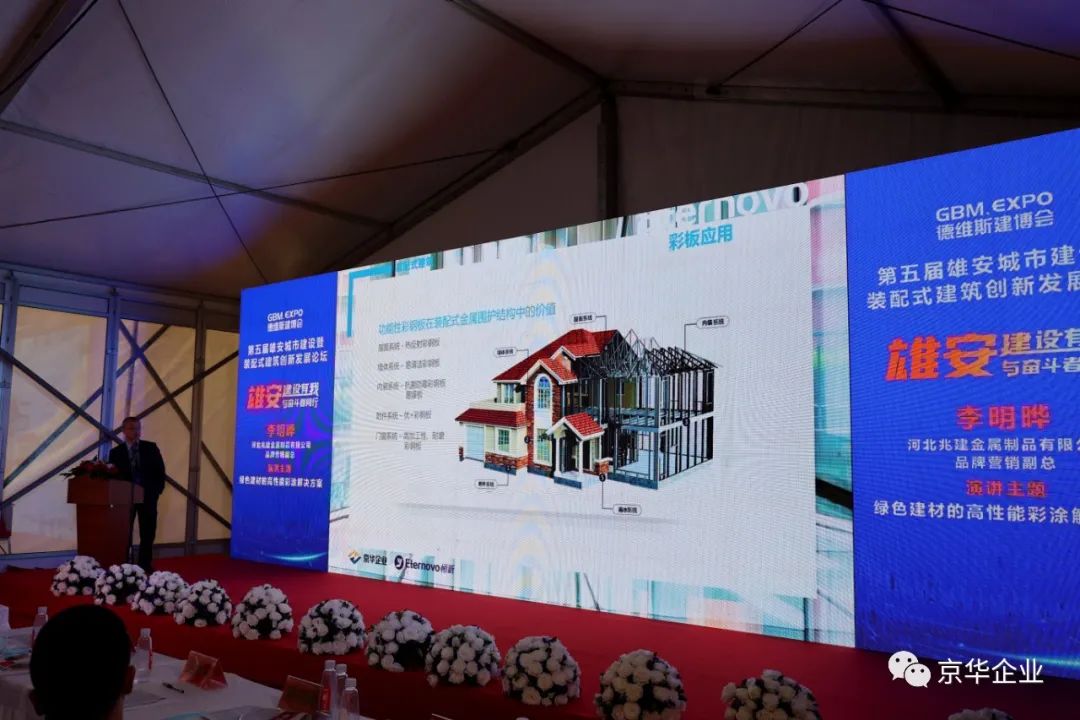 本著拓展視野、開(kāi)闊思路、學(xué)習(xí)先進(jìn)、交流合作的目的,京華兆建應(yīng)邀參加此次會(huì)議并推出《綠色建材的高性能彩涂解決方案》。京華兆建旗下Eternovo恒新品牌營(yíng)銷副總李明曄先生針對(duì)裝配式建筑這一課題發(fā)表了精彩演講同時(shí)對(duì)Eternovo恒新功能性彩涂板的介紹以及對(duì)京華兆建企業(yè)文化的宣導(dǎo)也得到了參會(huì)觀眾的認(rèn)可與肯定。