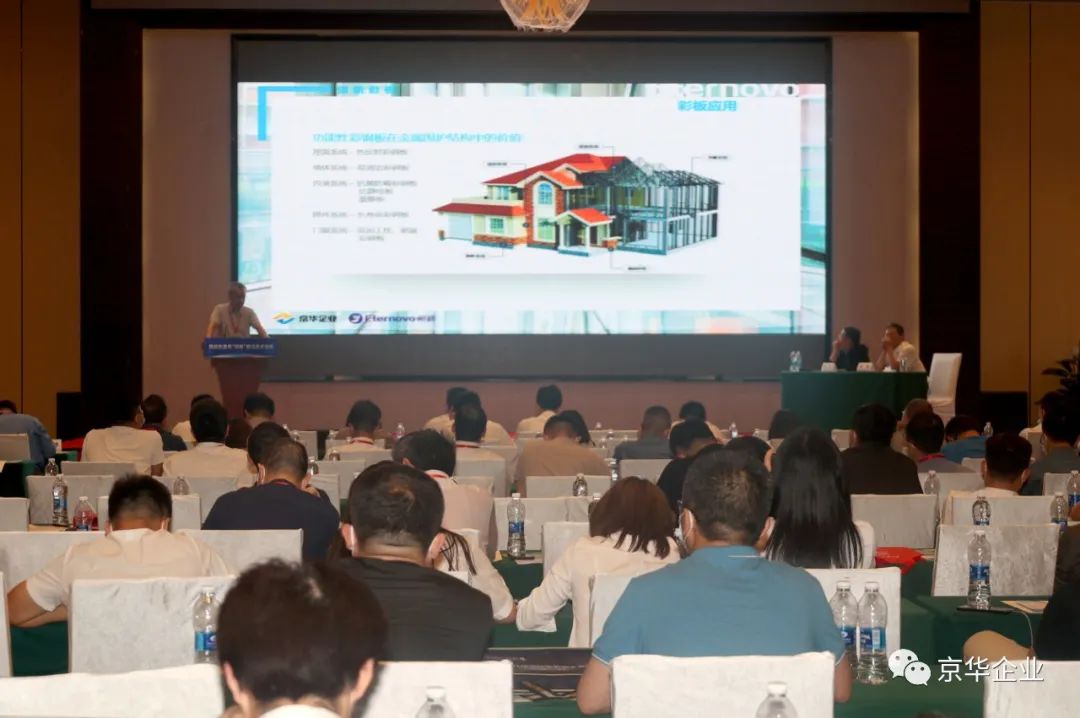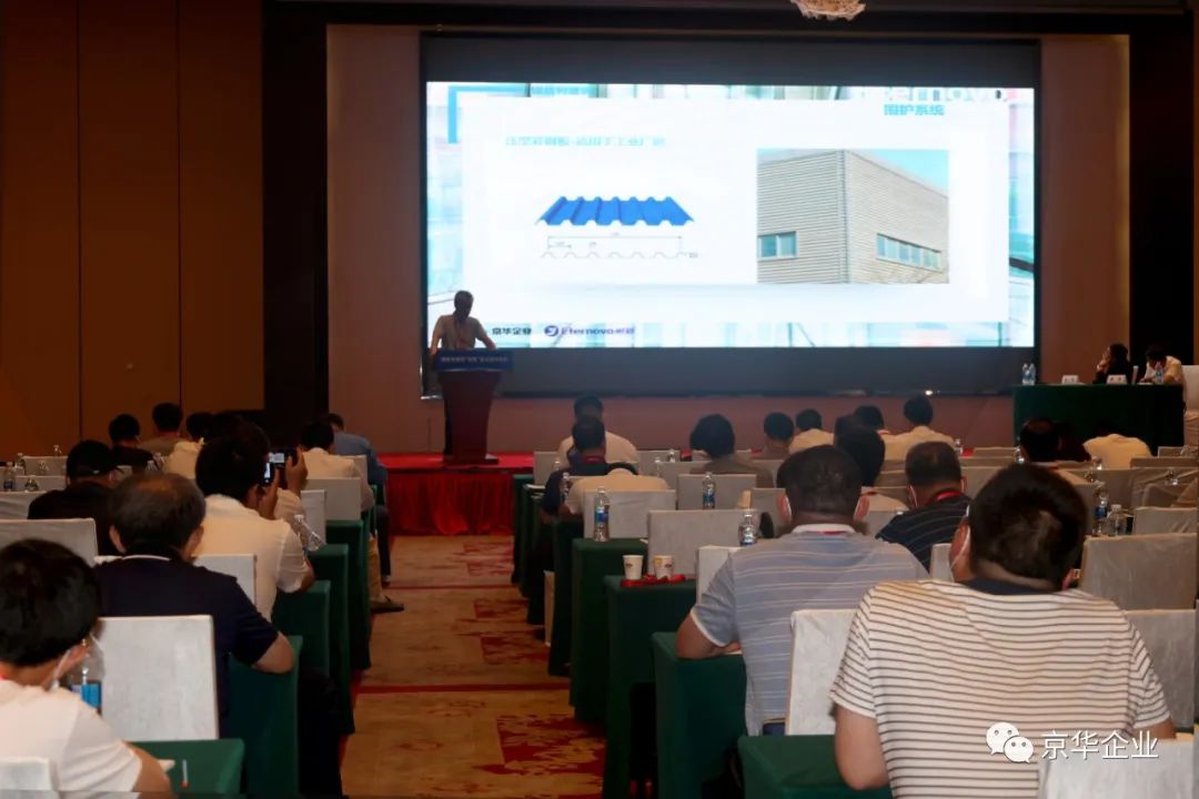 京華兆建應(yīng)邀參加此次會議,在“碳達(dá)峰、碳中和”目標(biāo)背景下,全面助力提高鋼結(jié)構(gòu)建筑質(zhì)量、技術(shù)與應(yīng)用水平并結(jié)合會議主題推出《鋼構(gòu)圍護(hù)系統(tǒng)的彩鋼解決方案》演講課題。同時,京華兆建對于鋅鋁鎂鍍層板、京華彩涂板以及Eternovo恒新功能性彩涂板的介紹也得到了現(xiàn)場參會企業(yè)的高度關(guān)注與肯定。