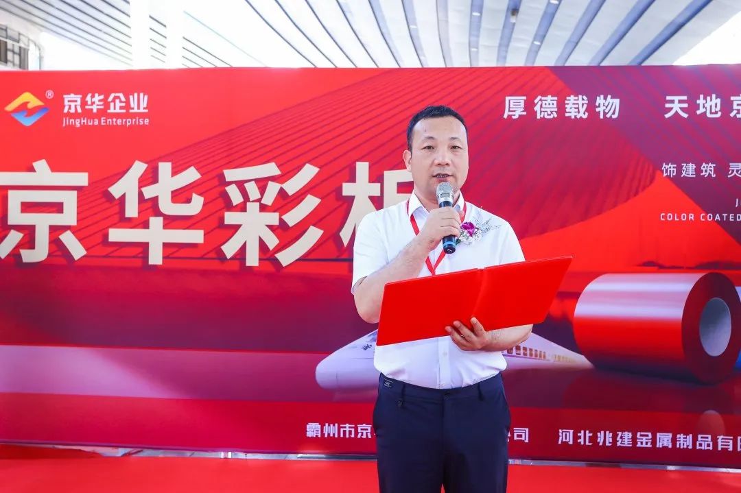京華金屬制品有限公司總經(jīng)理陳鐵柱、副總經(jīng)理王飛、副總經(jīng)理邢英壯、生產(chǎn)副總王光增、彩板銷售經(jīng)理肖冰等主要領導以及華鐵傳媒集團有限公司高級副總裁程碩、特邀經(jīng)銷商劉昊、郭澤溪、周世斌、梁馨予、齊振、周立揚、郭相、趙士宇等雙方領導、嘉賓共同出席。