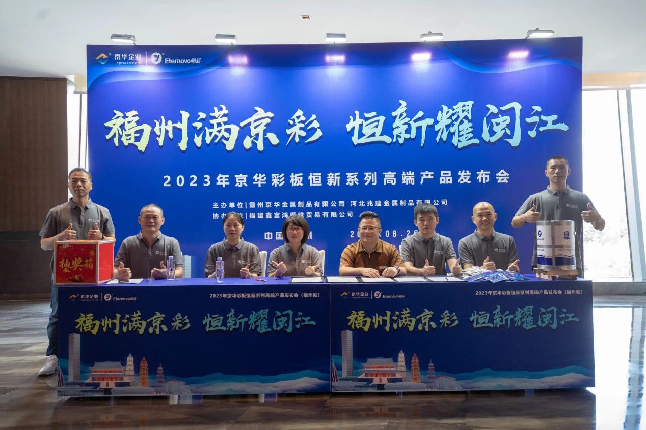 福州滿京彩,恒新耀閩江。2023年8月26日,京華企業(yè)恒新系列彩涂板推介會(huì)(福州站)在三迪希爾頓酒店圓滿召開。此次會(huì)議主要展現(xiàn)了京華企業(yè)優(yōu)秀的企業(yè)文化和恒新系列彩涂板的顯著優(yōu)勢(shì),恒新系列彩涂板將引領(lǐng)彩涂行業(yè)走高品質(zhì)定制化路線。京華企業(yè)攜手全國(guó)金屬涂鍍行業(yè)合作伙伴合作共贏,共創(chuàng)輝煌。