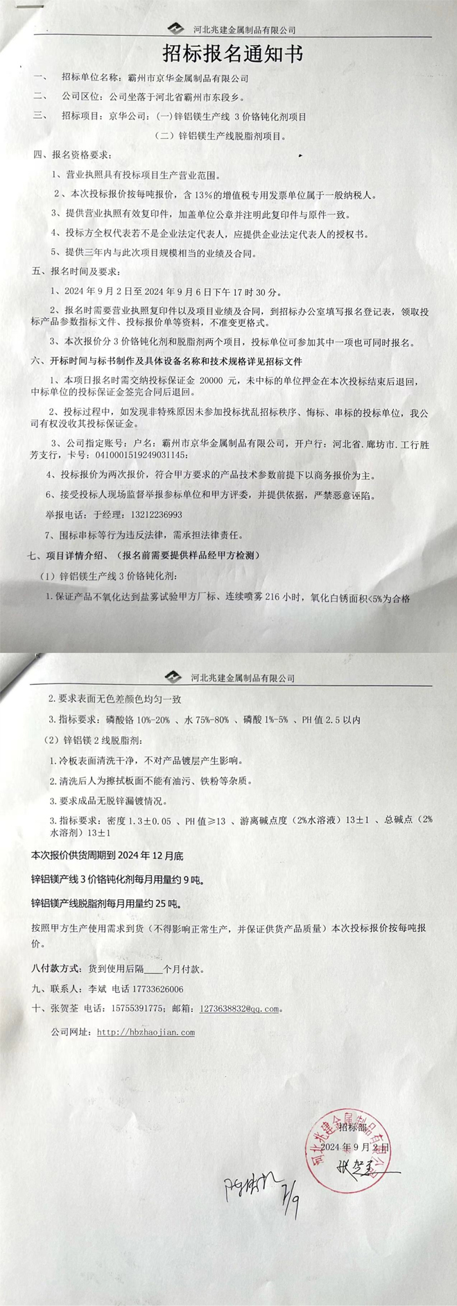 • 招標業(yè)主: 河北兆建金屬制品有限公司