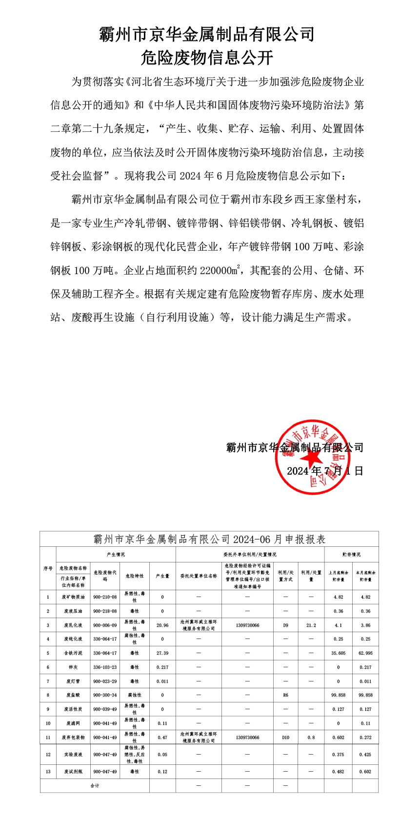 下一篇:24年7月危險(xiǎn)廢物信息公開-霸州市京華金屬制品有限公司