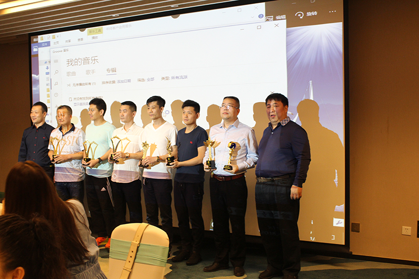 會(huì)議的另一項(xiàng)重點(diǎn)就是對(duì)2017的銷售成果進(jìn)行表彰和獎(jiǎng)勵(lì),對(duì)銷售業(yè)績、市場開拓、品牌維護(hù)做的較好的合作商進(jìn)行了表彰和頒獎(jiǎng),分別頒發(fā)了集團(tuán)專屬打造的獎(jiǎng)杯,期間北京國源嘉業(yè)貿(mào)易有限公司、天津冠力通貿(mào)易有限公司、唐山鼎和科技有限公司以上三家公司榮獲了集團(tuán)授予的“最佳潛力獎(jiǎng)”的獎(jiǎng)項(xiàng),天津靈旭貿(mào)易有限公司榮獲了“銷售杰出獎(jiǎng)”,江蘇慧中鋼鐵貿(mào)易有限公司榮獲了“銷售楷模獎(jiǎng)”,最后由來自上海洪奧實(shí)業(yè)有限公司的趙劍鋒趙總一下子摘得了“銷售冠軍獎(jiǎng)”、“市場開拓獎(jiǎng)”兩項(xiàng)桂冠,穩(wěn)坐冠軍的寶座。
