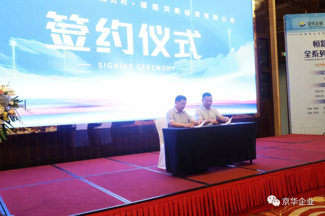 在現(xiàn)場嘉賓們的共同見證下,京華企業(yè)和榮德勝在現(xiàn)場舉行了“恒新“品牌系列彩涂產(chǎn)品的授權(quán)經(jīng)銷商簽約典禮。