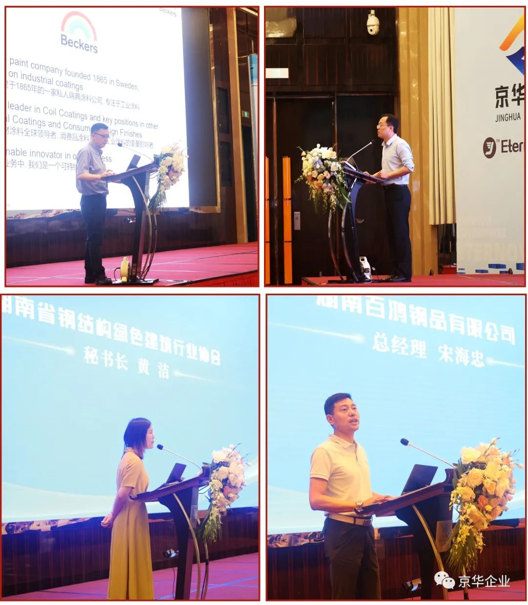 “恒新“合作方國際卷材涂料領(lǐng)導(dǎo)品牌的代表;蘭格鋼鐵網(wǎng)的李釗副總經(jīng)理;湖南省鋼結(jié)構(gòu)綠色建筑行業(yè)協(xié)會秘書長黃潔女士;發(fā)表了精彩的演講。湖南百鴻鋼品有限公司總經(jīng)理宋海忠是京華企業(yè)彩涂產(chǎn)品的老用戶,代表廣大湖南地區(qū)的客戶發(fā)言。