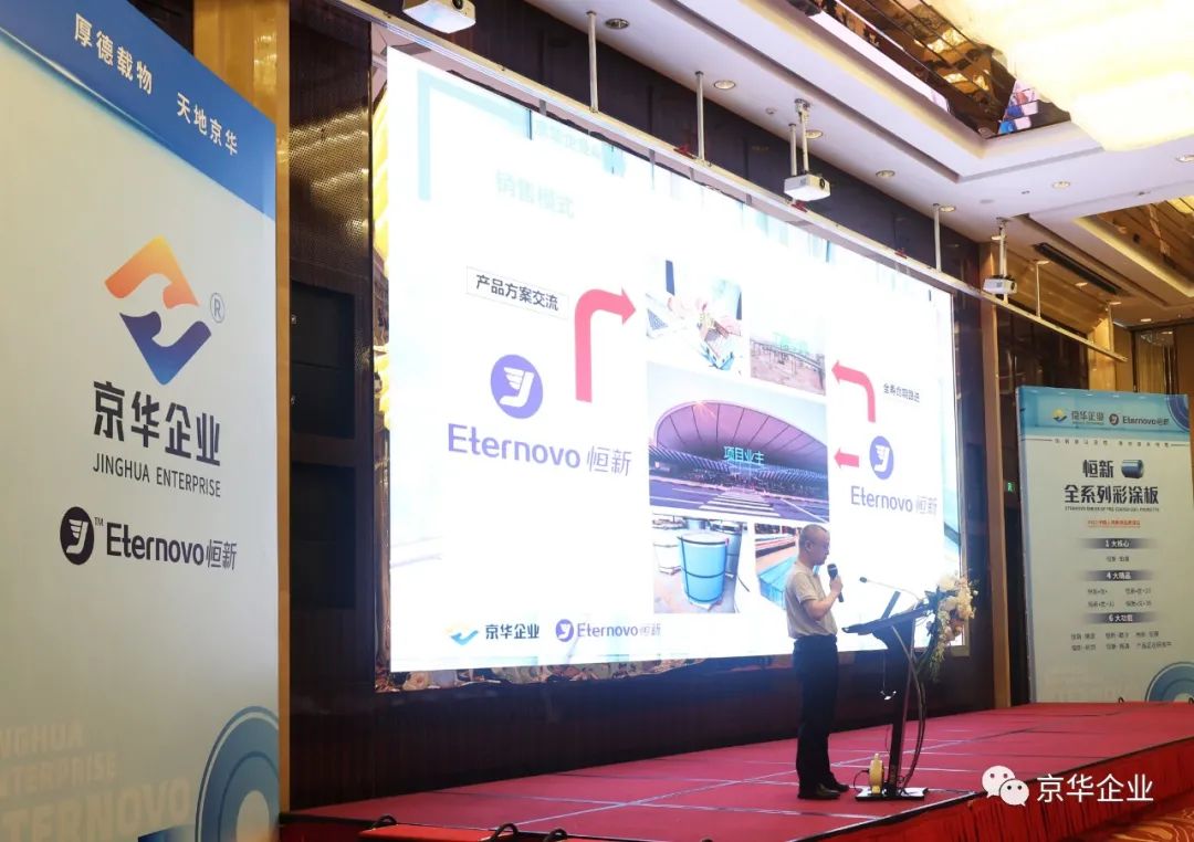 在接下來的一小時時間里,京華企業(yè)“恒新“品牌營銷副總李明曄先生,從企業(yè)實(shí)力和品牌定位,新型鋅鋁鎂基材以及全系列”恒新“彩涂產(chǎn)品線,”恒新“產(chǎn)品定制服務(wù)三方面向與會嘉賓做了全面的講解,全方位立體化向大家詳細(xì)闡述了”恒新“產(chǎn)品解決方案的獨(dú)特價值,以創(chuàng)新設(shè)計理念,幫助綠色建筑的節(jié)材,節(jié)水,節(jié)能,提升環(huán)境舒適度等各方面達(dá)成極大提升,以綠色理念幫助廣大客戶實(shí)現(xiàn)彩涂產(chǎn)品銷量的可持續(xù)增長。
