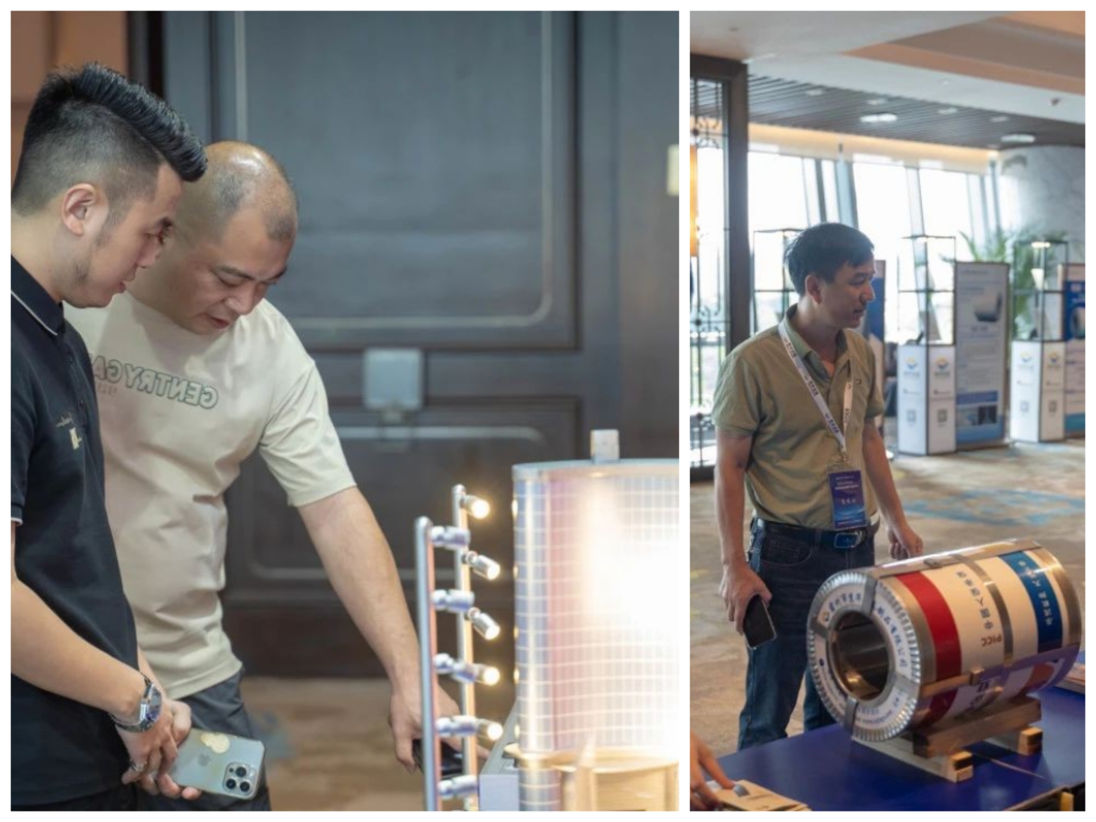 京華企業(yè)為嘉賓提供了精美的下午茶,產(chǎn)品展示區(qū)吸引了眾多觀眾的目光。展臺上陳列著京華企業(yè)最新的產(chǎn)品包裝和鋼卷模型,彰顯了企業(yè)的實力和創(chuàng)新能力。嘉賓紛紛駐足觀賞,通過模型展示深入了解了彩涂產(chǎn)品的多樣性和優(yōu)勢。同時,展臺上還進行了模型實驗效果的展示,令人驚嘆不已。實驗直觀地展現(xiàn)了“恒新”系列產(chǎn)品的高端性能,使與會嘉賓更加贊嘆于京華企業(yè)對產(chǎn)品創(chuàng)新的投入與專注。