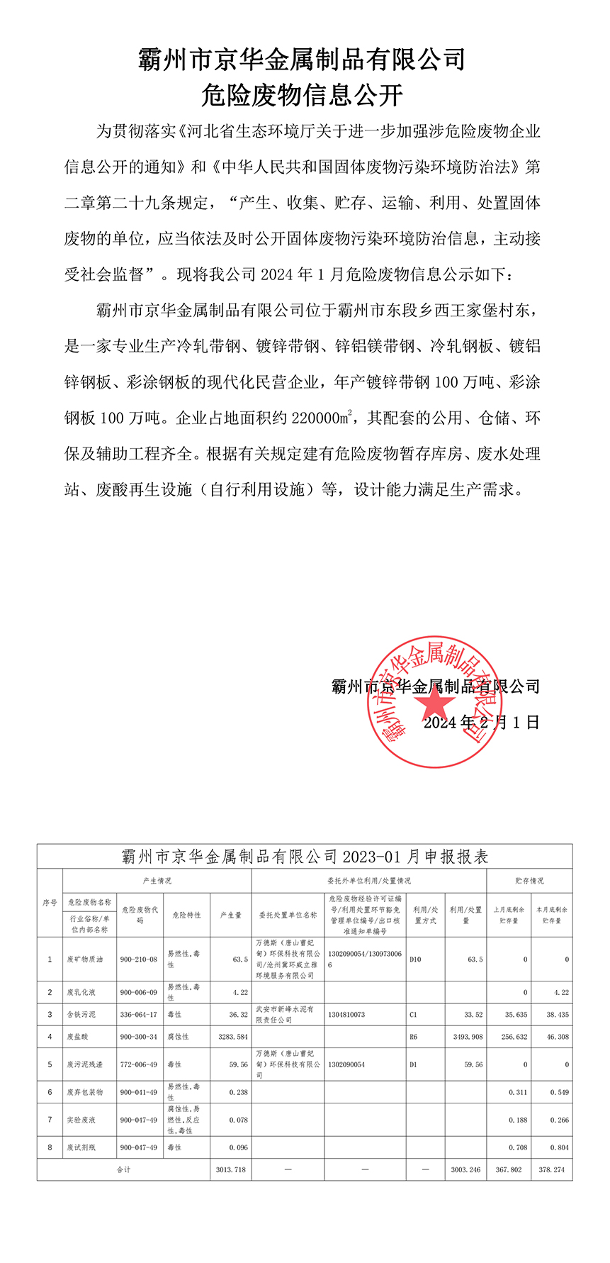 下一篇:24年2月危險(xiǎn)廢物信息公開(kāi)-霸州市京華金屬制品有限公司