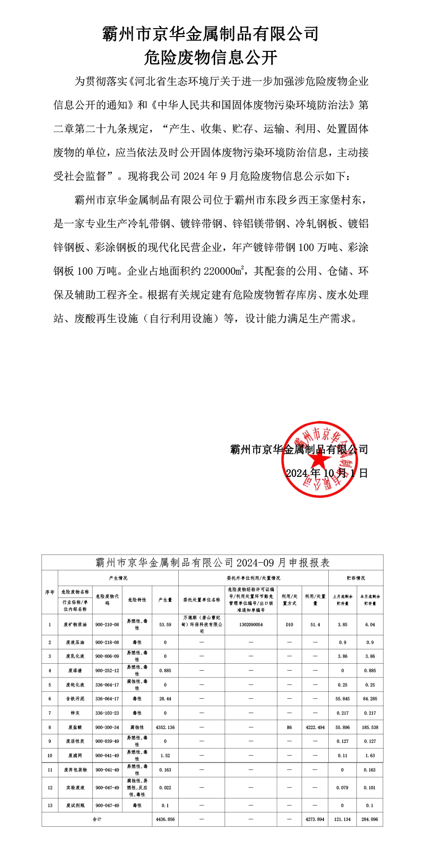下一篇:24年10月危險(xiǎn)廢物信息公開-霸州市京華金屬制品有限公司